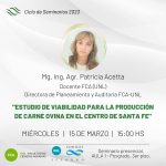 15/03/23-15hs: “Estudio de viabilidad para la producción de carne ovina en el centro de Santa Fe”. Mg. Ing. Agr. Patricia Acetta.