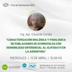 12/04/23-15hs: “Caracterización biológica y fisiológica de poblaciones de Echinochloa con sensibilidad diferencial al glifosato en la Argentina”. Ing. Agr. Eduardo Cortés.
