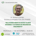 01/11/23-15hs: “Relaciones hídricas entre tejidos internos y externos de órganos en crecimiento”. Dr. Norberto Gariglio.
