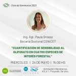 24/05/23-15hs: “Cuantificación de sensibilidad al glifosato en cuatro especies de interés forestal”. Ing. Agr. Paula Grosso.