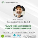 29/11/23-15hs: “Climate crisis and the need for negative emission technologies”. Ivan Janssens.