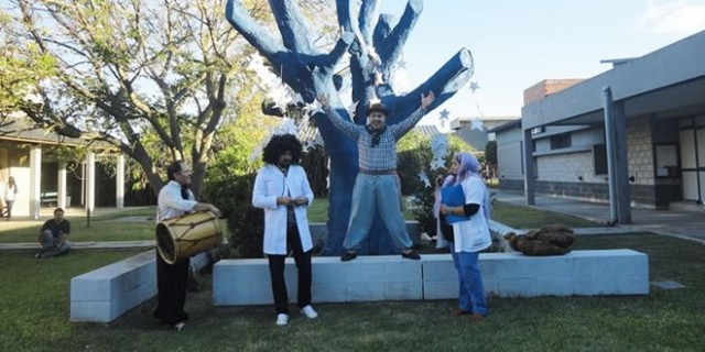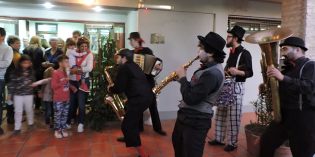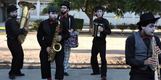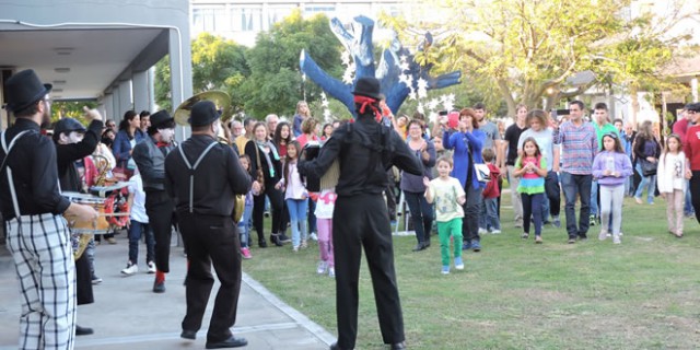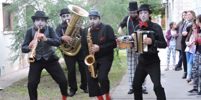 Acto seguido, la sorpresa fue la aparición de la Fanfarria Ambulante, grupo musical humorístico,  hizo de su actuación la delicias del público. La Fanfarria fue guiando a los visitantes a través del recorrido preparado: la visita al Museo de Anatomía, el Pabellón de Especies Arbóreas y la Biblioteca FAVE con la muestra de fotografías “lo que ven mis ojos” de Miguel Ángel Venturini. Abundancia de risas, alegría y aplausos sostenidos se oían a través de los jardines del Campus,