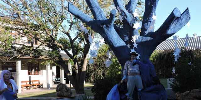 Manos o Patas Azules, intervención teatral a cargo del Grupo de los Diez, guión y dirección de María Rosa Pfeiffer, ha sido la recreación de la historia del árbol azul, árbol (timbó) que representa un símbolo en el devenir de la Facultad de Ciencias Veterinarias. Lograda intervención, escena campera donde los espíritus de los animales imponen al personaje gauchesco el mandato de difundir la historia y significado del árbol azul.