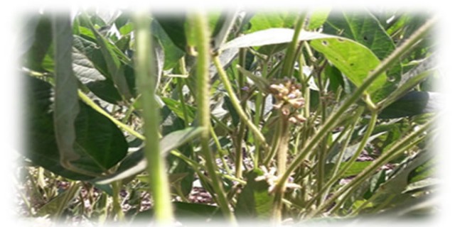 En tanto que el cultivo de soja de segunda sobre trigo con fechas de siembra en las primeras semanas de diciembre, representa una superficie importante en la región, se encuentra en etapas reproductivas tempranas (R3-R5) con buena estructura de planta, presentando caída de hojas, flores y vainas, dependiendo de las próximas lluvias la mayor o menor pérdida de rendimiento (Foto 2). Los lotes de siembra tardía enero (pocos en la región) se encuentran en estado regular a malo. También se observó que algunos lotes de soja se destinaron a pastoreo.