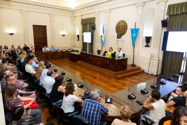 El encuentro contó con la participación del rector de la UNL Enrique Mammarella, decanas y decanos de las distintas facultades, docentes, nodocentes y estudiantes, quienes escucharon las presentaciones a cargo de la vicerrectora y Secretaria de Planeamiento Institucional e Internacionalización Larisa Carrera y del Secretario Académico Daniel Comba.