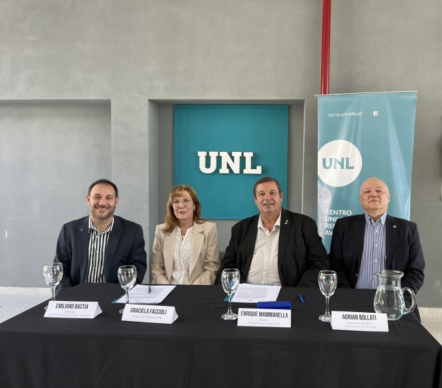 Previo al acto inaugural, se realizó la firma de un convenio entre la UNL y la empresa Proyección Electroluz S.R.L., representada por su dueña, Graciela Faccioli, que se incorpora como Padrino Benefactor del Presupuesto Participativo 2025. La empresa donó los materiales necesarios para la instalación eléctrica requerida en los nuevos espacios, acompañando así el proceso de crecimiento del Centro Universitario.
