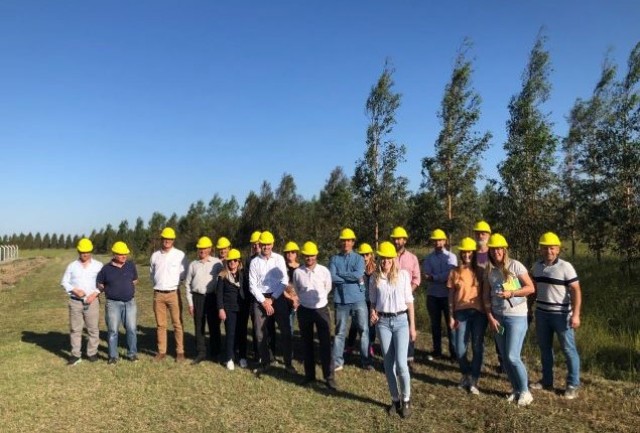 Tras la recorrida por la plantación forestal, Jonicélia Araujo detalló que “la Cooperativa tenía ese lote improductivo, salino-sódico, con problemas de drenaje y también con algunos bajos inundables, con alto grado de compactación y baja fertilidad. Con la intención de hacer una unidad demostrativa forestal con fines socio ambientales y también para probar la producción forestal como una unidad de negocio, la Cooperativa en convenio con la Facultad de Ciencias Agrarias, planificó y realizó una unidad productiva forestal. Allí se evalúa anualmente el crecimiento y comportamiento de cinco materiales genéticos de Eucaliptos -4 clonales y uno de semilla- y también la respuesta de estos materiales con y sin manejo de subsolado y fertilización”.